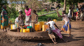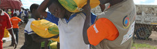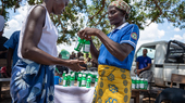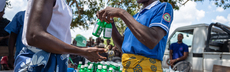 Zum Beispiel beim Verteilen von Chlor. Damit können Menschen das Flusswasser reinigen und Krankheiten wie Cholera vorbeugen.