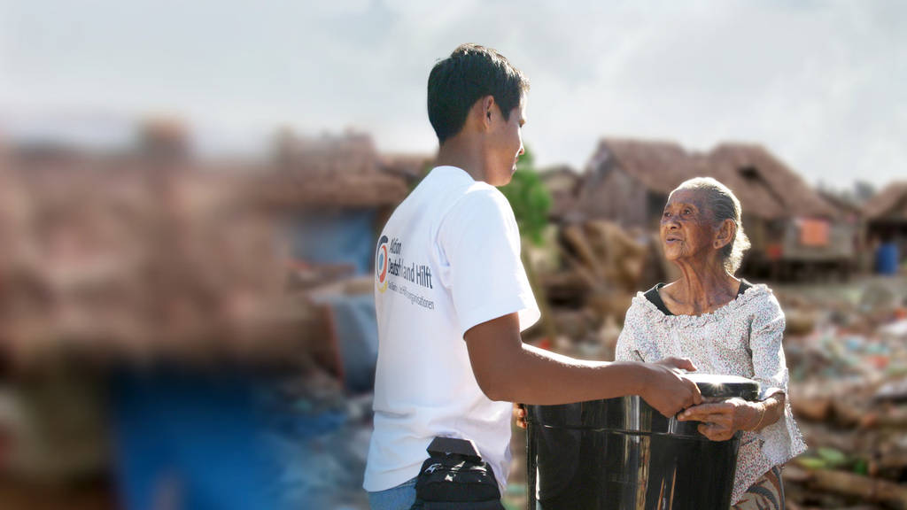 Auch ein Jahr nach der Katastrophe ist unser Bündnis vor Ort und unterstützt die Menschen: Hand in Hand mit lokalen Helfern.